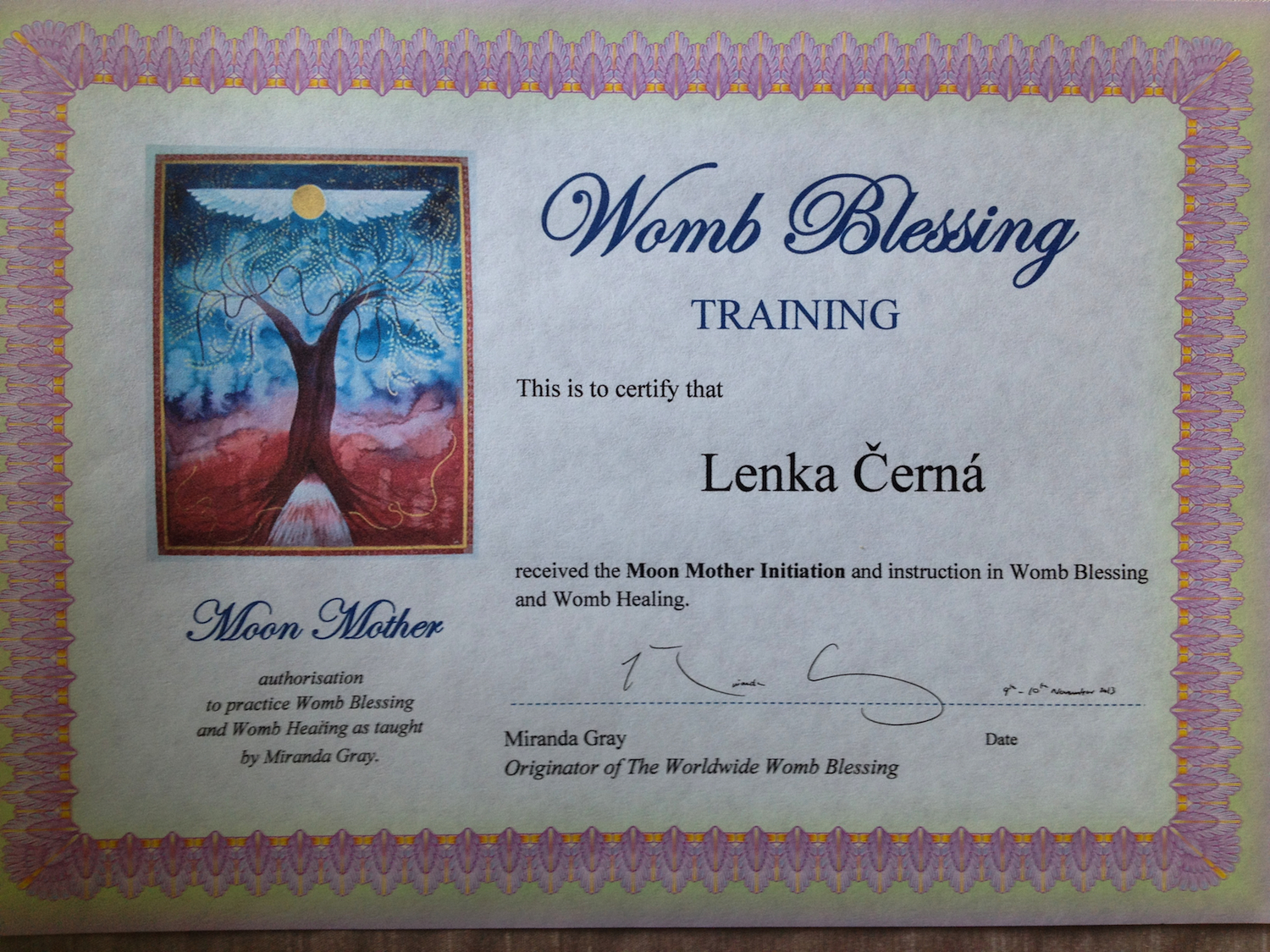 Jsem absolventkou Womb Blessing Training s Mirandou Gray. Certifikát zde: Womb Blessing Training